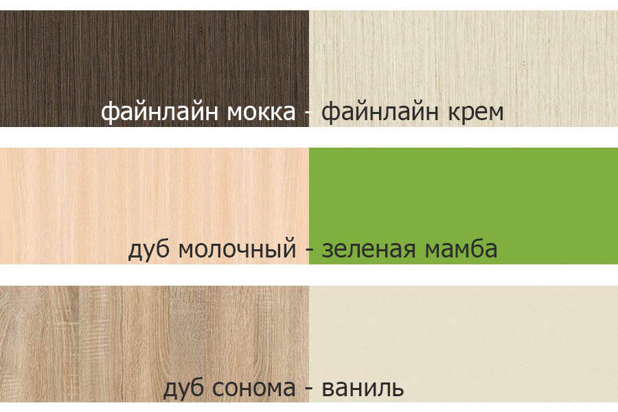 На главном фото изображена кухня в цвете «файнлайн мокка - файнлайн крем», модель также доступна в расцветках «дуб молочный - зеленая мамба», «дуб сонома - ваниль».