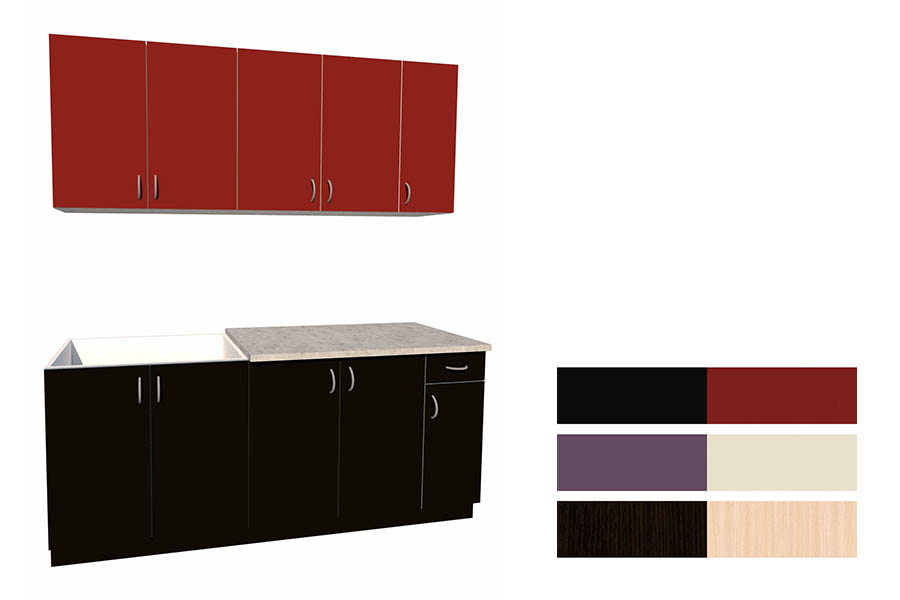 На главном фото изображена кухня в цвете «черный - красный», модель также доступна в расцветках «виола - ваниль», «венге - дуб молочный».