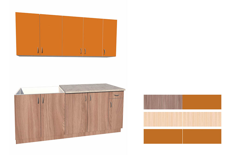 На главном фото изображена кухня в цвете «ясень шимо темный - оранжевый», модель также доступна в расцветках «дуб молочный - дуб молочный», «оранжевый - оранжевый».
