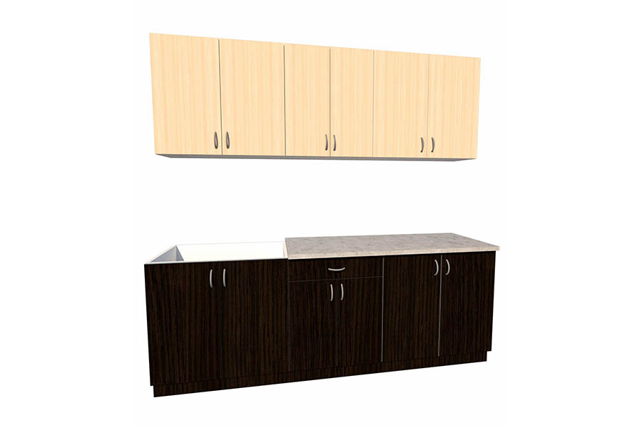 Материал фасада и корпуса: ЛДСП 16 мм. Ширина кухни 200 см.
