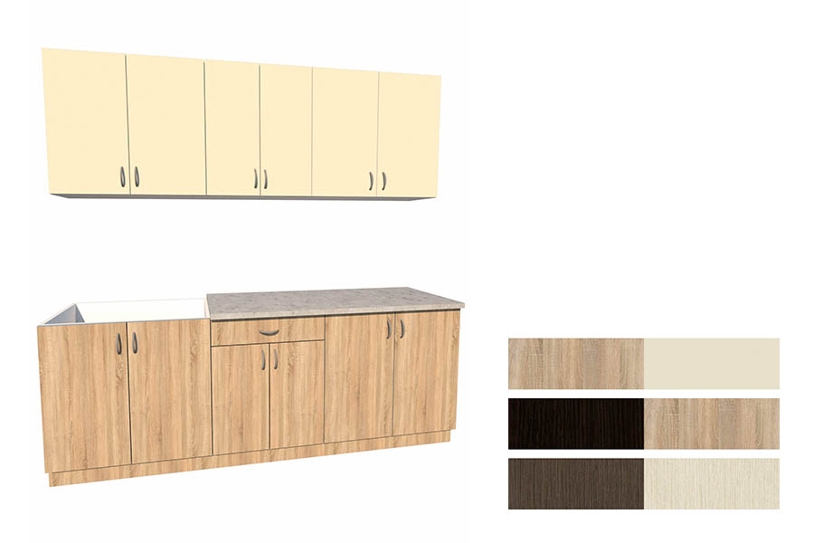 На главном фото изображена кухня в цвете «дуб сонома - ваниль», модель также доступна в расцветках «венге - дуб сонома», «файнлайн мокка - файнлайн крем».