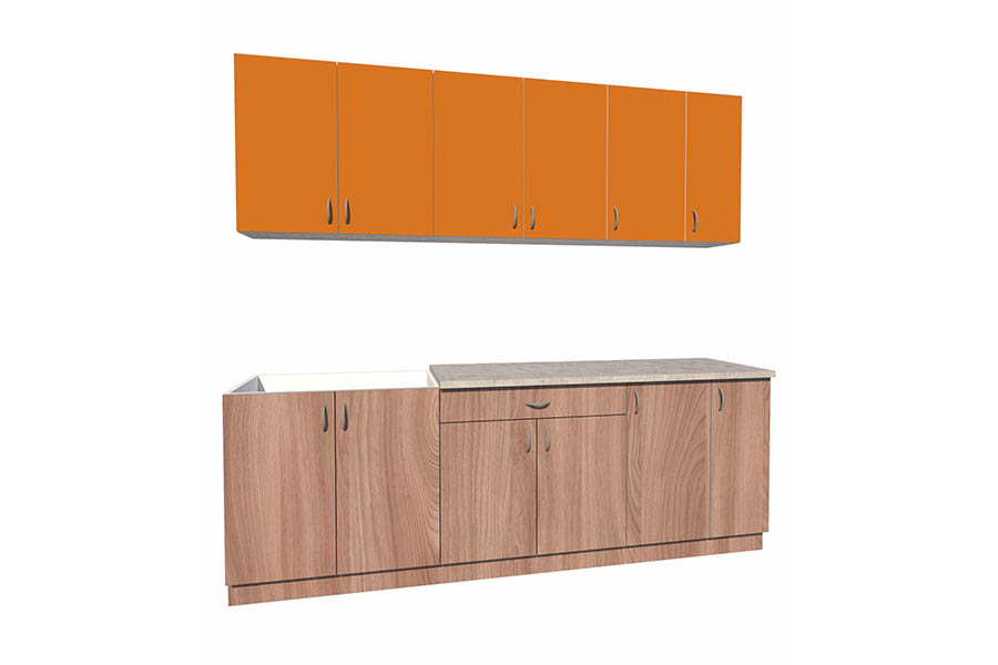 Материал фасада и корпуса: ЛДСП 16 мм. Ширина кухни 260 см.