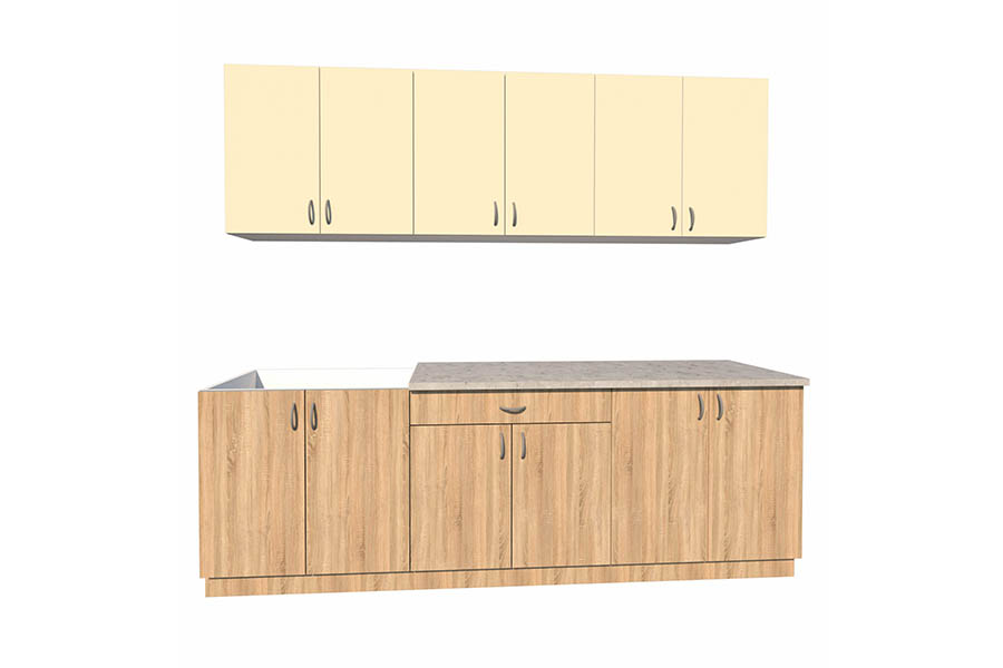 Материал фасада и корпуса: ЛДСП 16 мм. Ширина кухни 250 см.