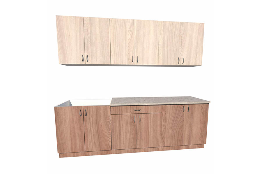- Глубина нижних шкафов: 600 мм (по корпусу – 480 мм).