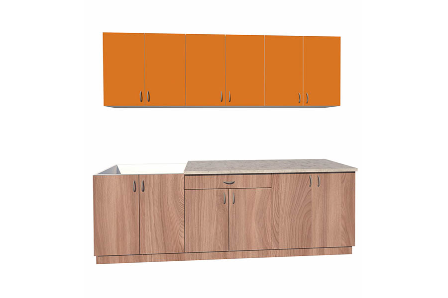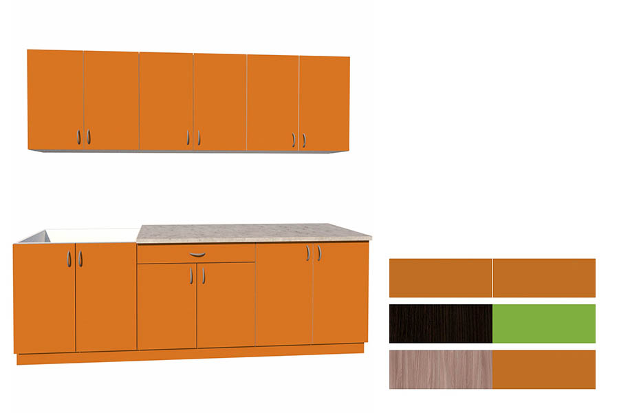 - Цвет фасадов: оранжевый/оранжевый.