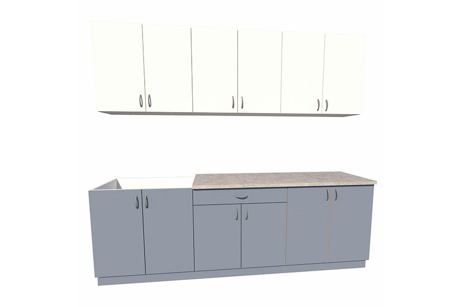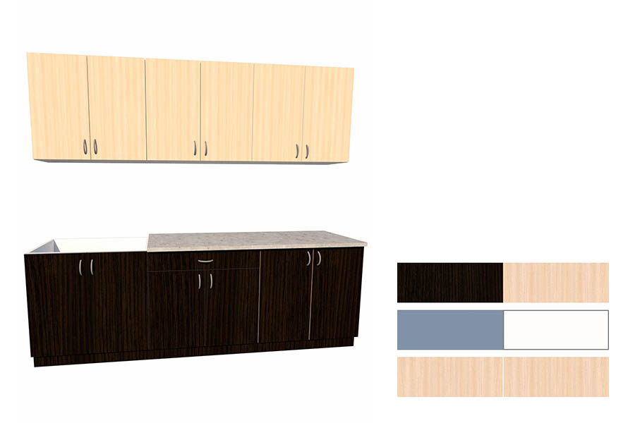 Корпус из белой ЛДСП. Несколько цветов фасадов на выбор.
