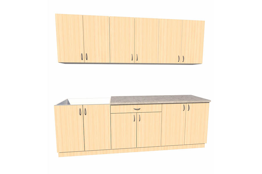 - Глубина нижних шкафов: 600 мм (по корпусу – 480 мм).