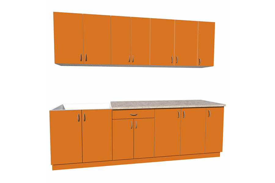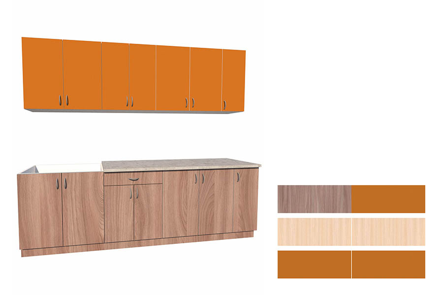 Бюджетная кухня шириной 250 см в нескольких цветовых исполнениях.