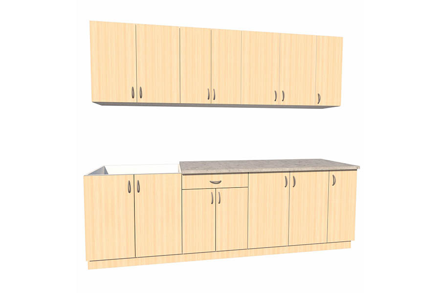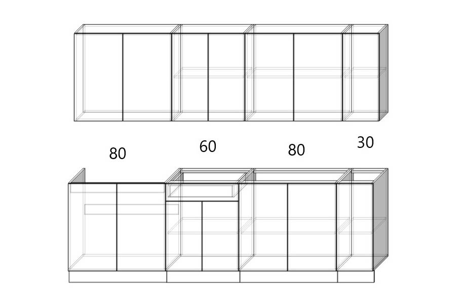 - Глубина нижних шкафов: 600 мм (по корпусу – 480 мм).