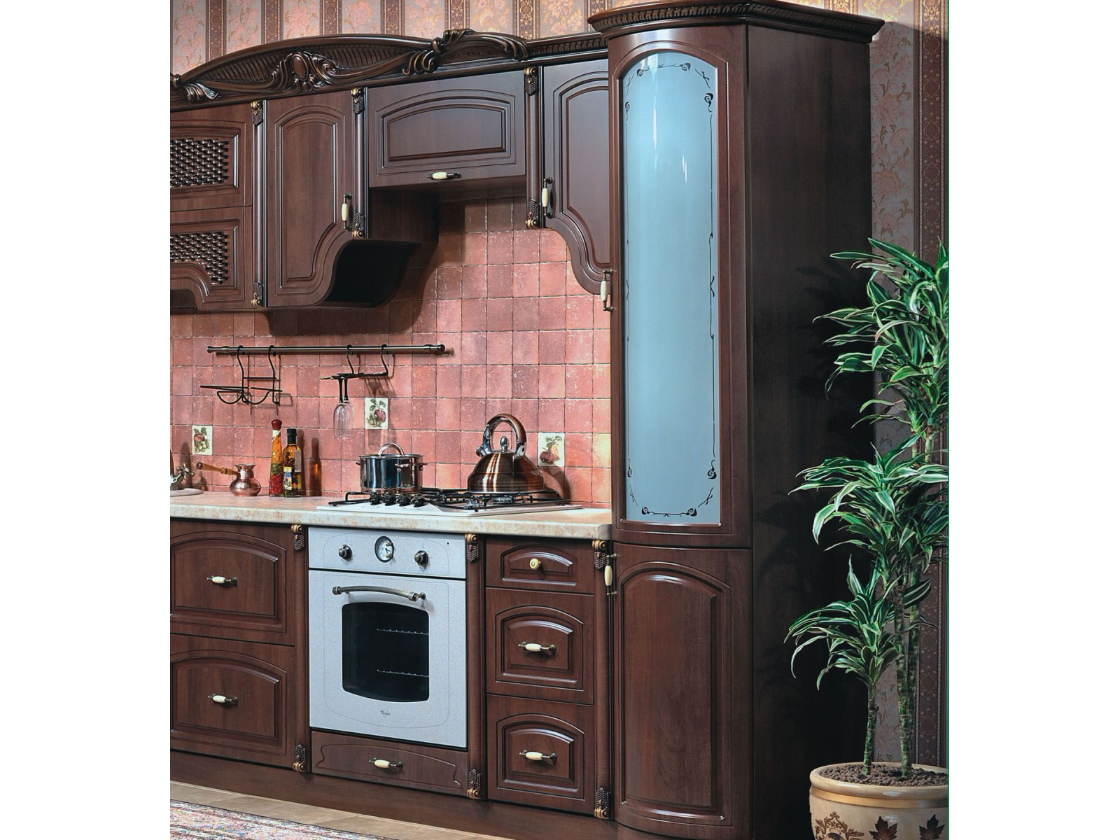 Изготовлена в светлых натуральных тонах. Фасады с декором.