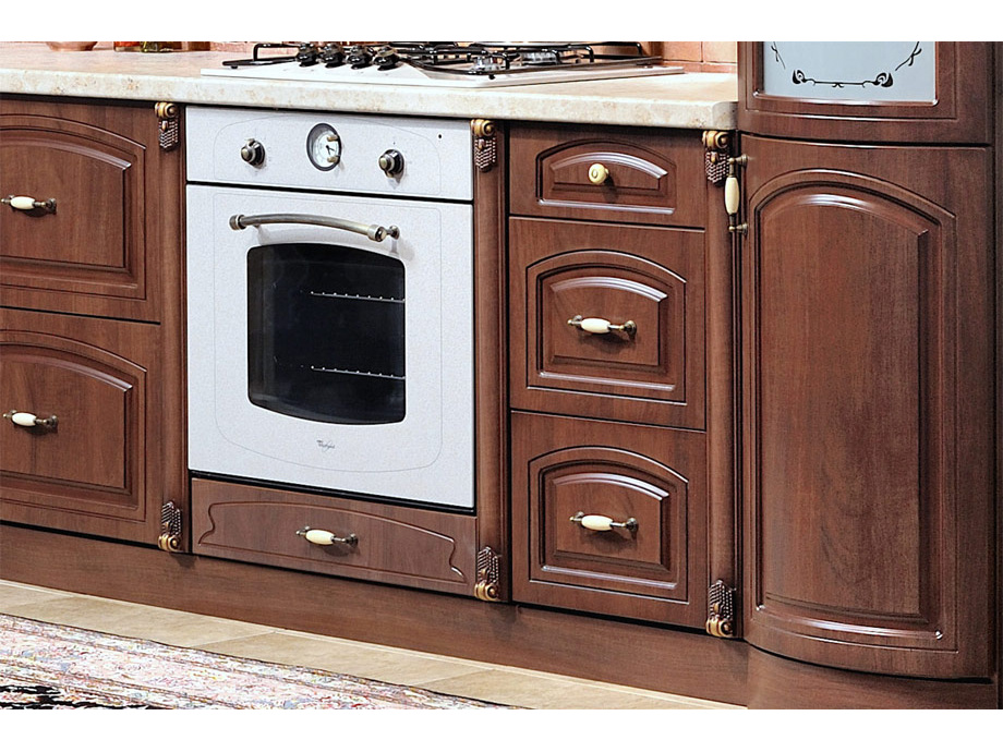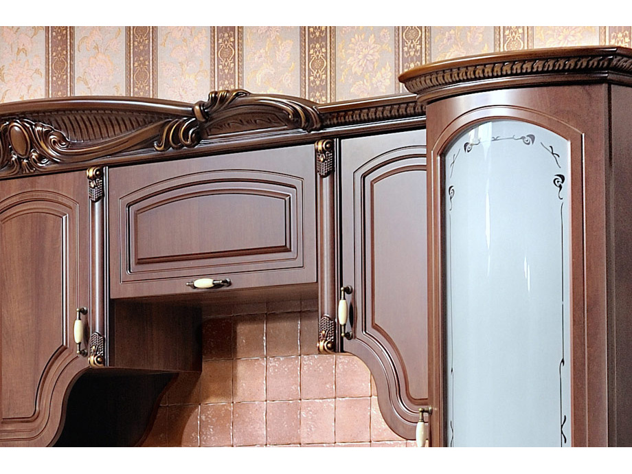 Декоративные элементы, фасады, накладки окрыты темной патиной и матовым лаком на водной основе.
