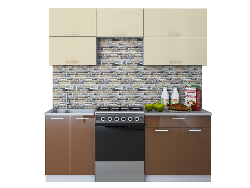 Кухня прямая «Мила Глосс» 2.0-60, ваниль-шоколад