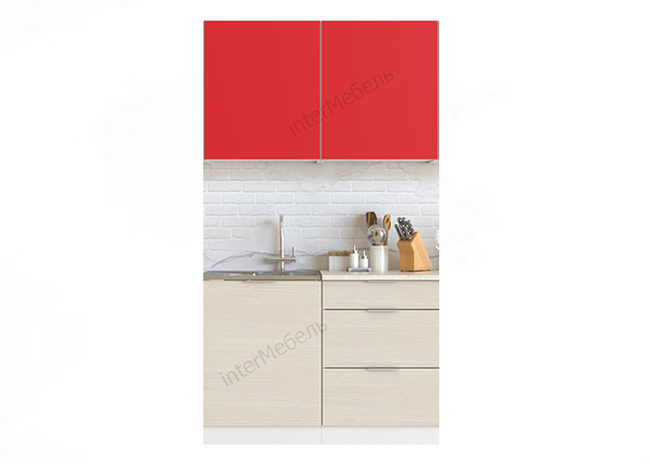 Кухня прямая «Mix Top-1» 1.2 м, красный-вудлайн кремовый
