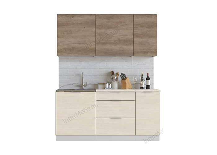 Кухня прямая «Mix Top-2» 1.6 м, дуб каньон-вудлайн кремовый