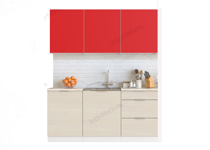 Кухня прямая «Mix Top-3» 1.7 м, красный-вудлайн кремовый