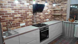 Готовый гарнитур с комбинированными фасадами из ЛДСП. Ширина кухни 220 см.
