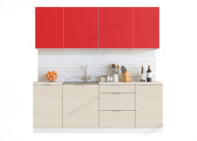 Кухня прямая «Mix Top-5» 2.0 м, красный-вудлайн кремовый