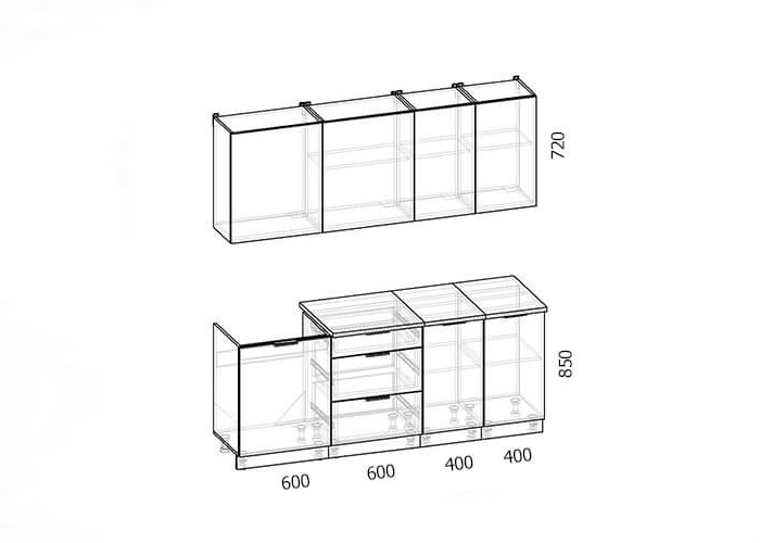 Материал фасада и корпуса: ЛДСП 16 мм. Ширина кухни 260 см.