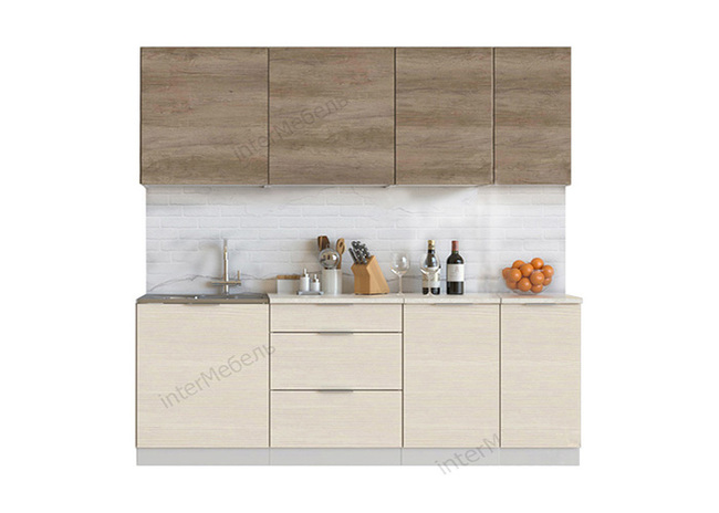 Кухня прямая «Mix Top-6» 2.1 м, дуб каньон-вудлайн кремовый
