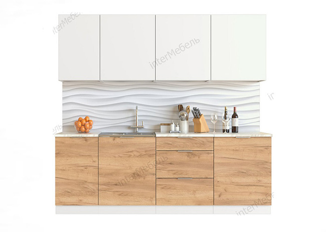 Кухня прямая «Mix Top-7» 2.2 м, белый-дуб крафт золотой
