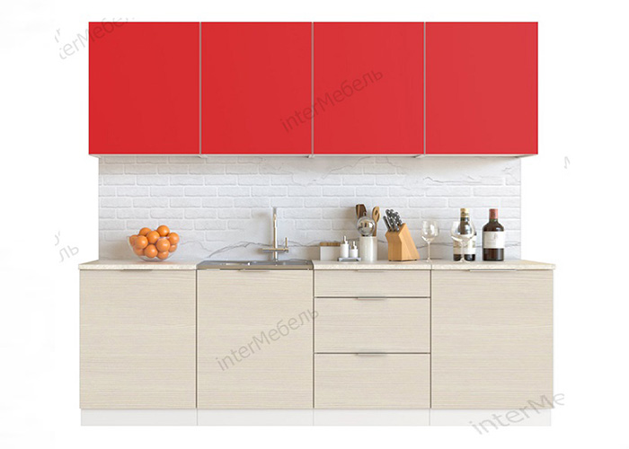 Кухня прямая «Mix Top-8» 2.4 м, красный-вудлайн кремовый