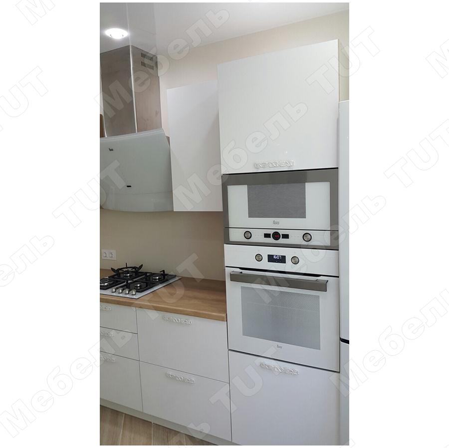 Светлые фрезерованные фасады. Ширина кухни 160 см.