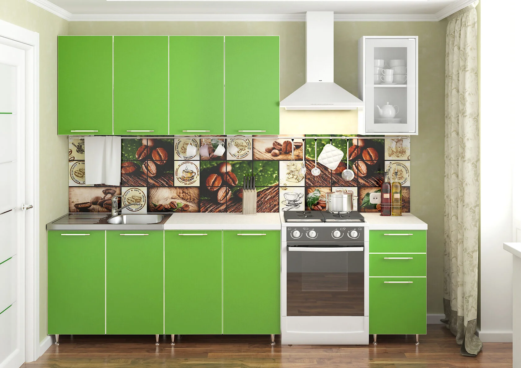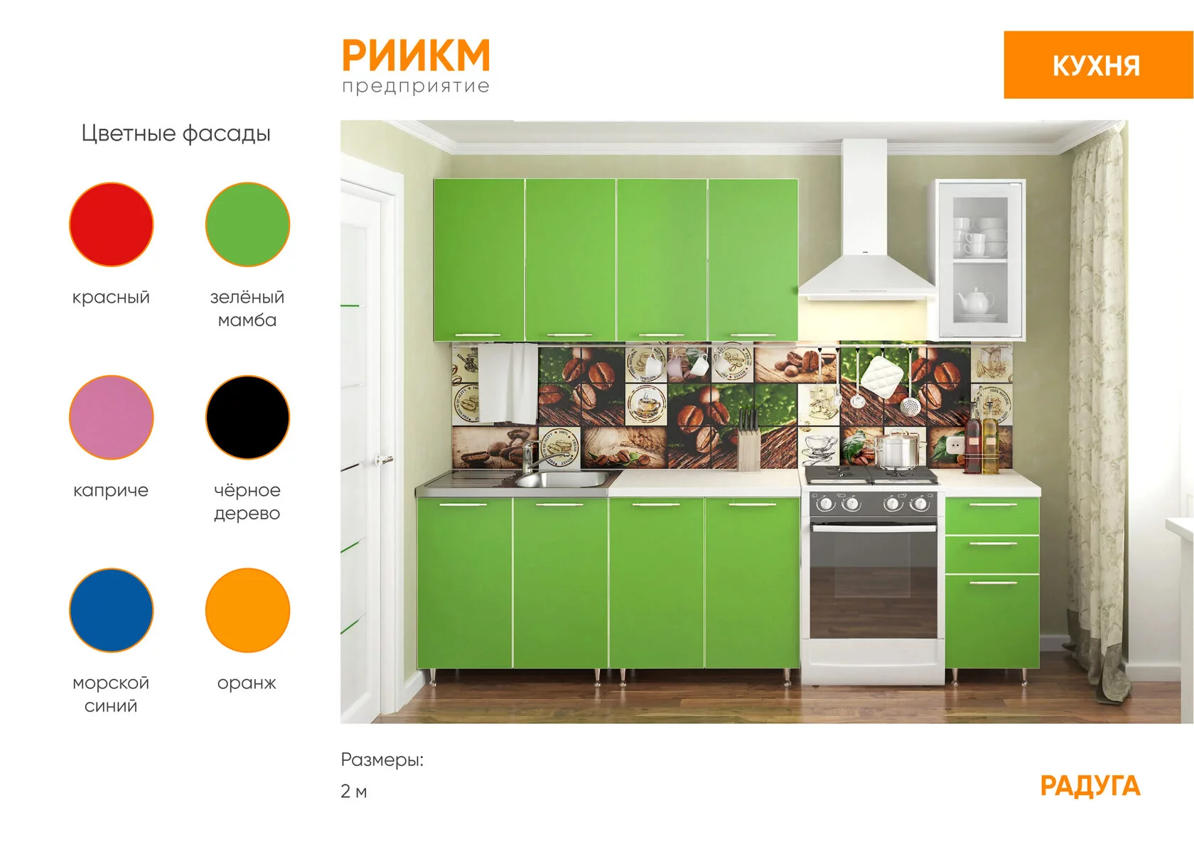 Любая готовая кухня 1.5 м., 1.8 м., 2.0 м., может комплектоваться дополнительными модулями: угловой модуль (ШВНУ) 850*850 мм, (ШВН) 600 мм, (ШВН) 400 мм, а также дополнительными полками и столешницами (для установки врезной мойки).