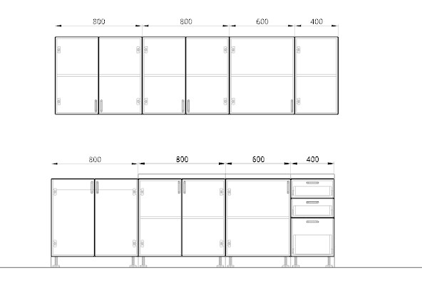 Общая ширина кухни: 3000 мм.