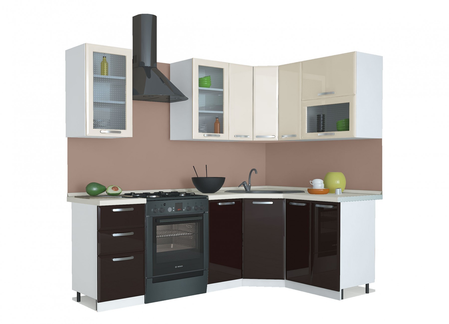Кухня «Равенна Лофт» 1.65х1.45м Ваниль глянец / шоколад