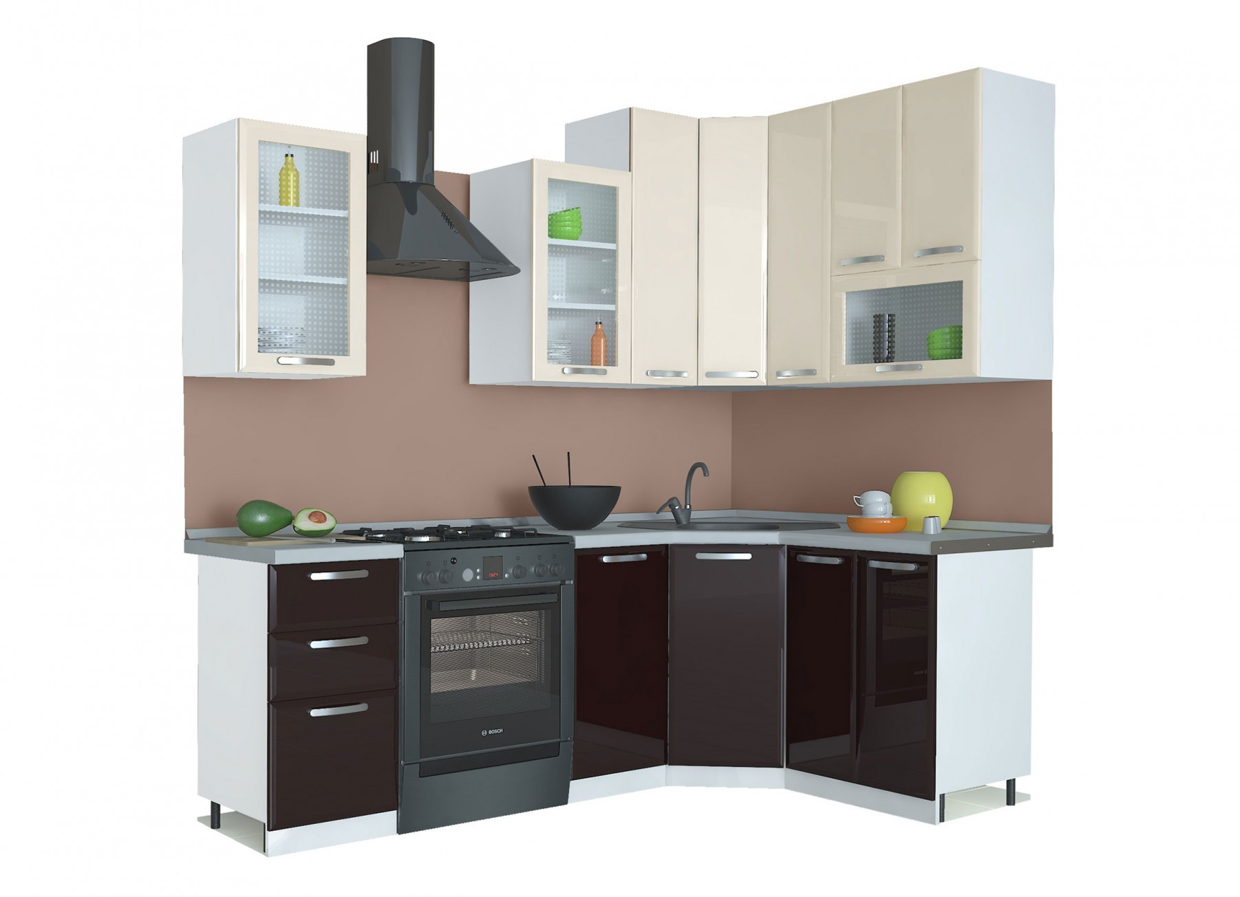 Кухня «Равенна Лофт» 1.65х1.45м (Высокие) Ваниль глянец / шоколад