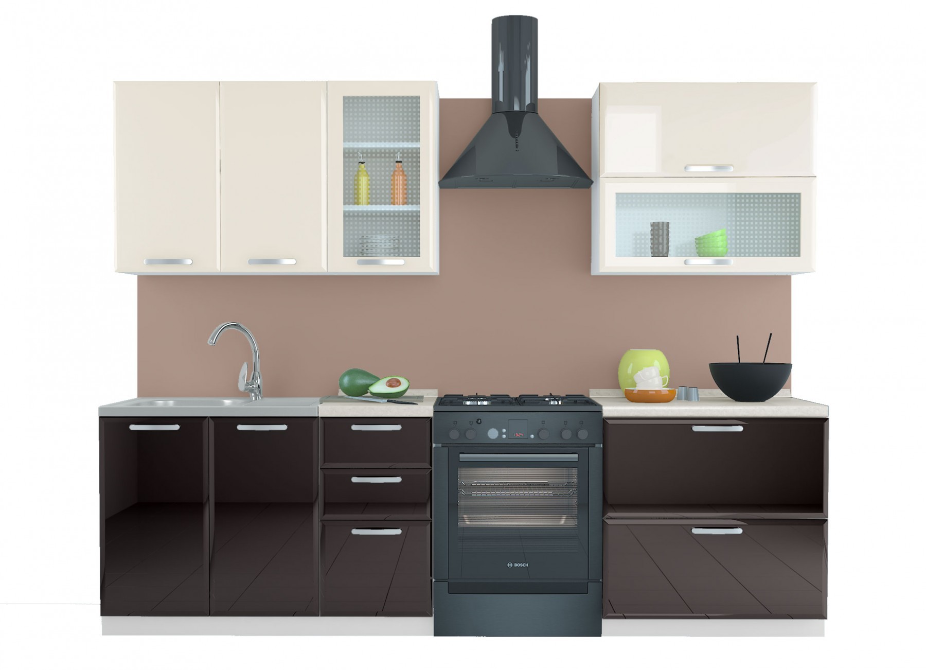 Кухня «Равенна Лофт» 2м №2 Ваниль глянец / шоколад