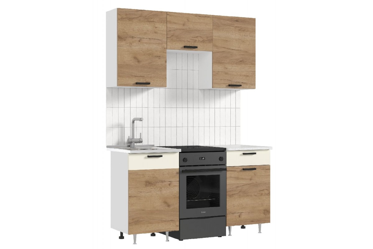 Кухня «Рио 1,0 м с ШВГ500-342» (дуб крафт золотой - бежевый)