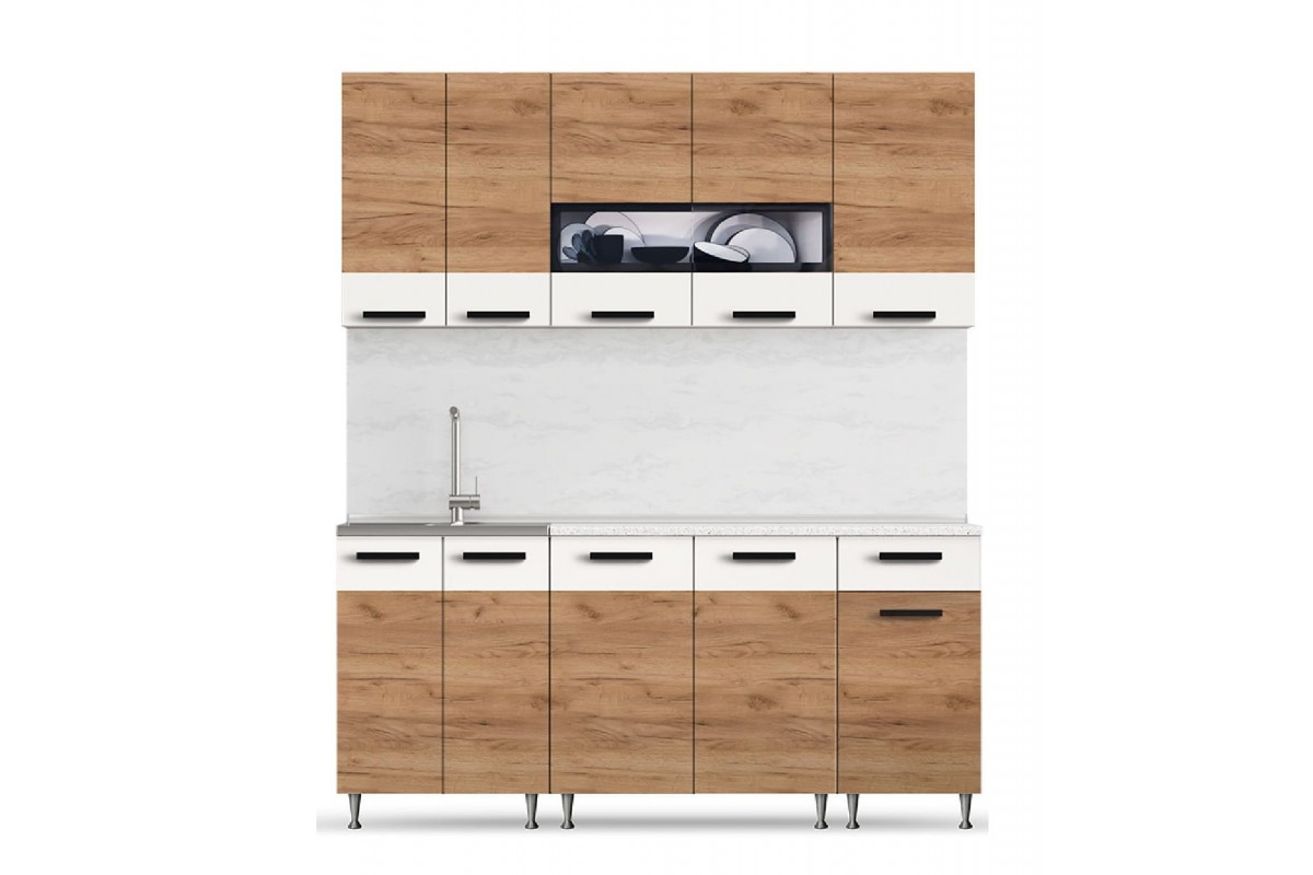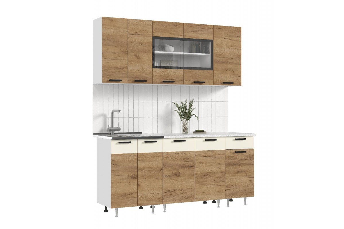 Кухня «Рио 1,8 м» (дуб крафт золотой - бежевый)