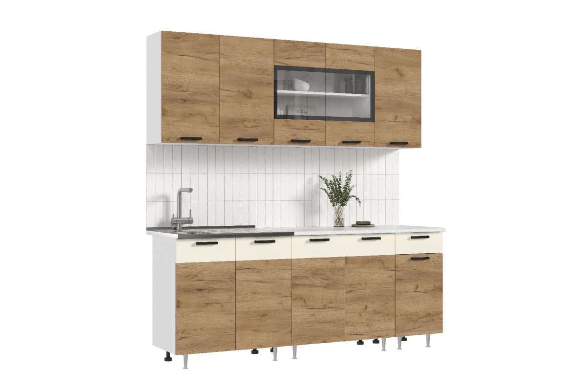 Кухня «Рио 2,0 м» (дуб крафт золотой - бежевый)