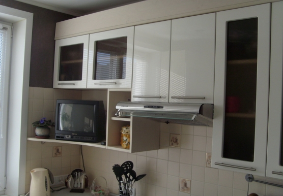 Дополнительно: Корпус - ДСП ламинированное «Kronopol» (Польша) – цвет венге светлый. Фасады низ – МДФ пластик «Abet» (Италия) + алюминиевый Т-профиль по периметру. Фасады верх – МДФ крашеный. Стекло – «Роса» (Турция) – цвет бронза. Постформинг – «Getalit» (Германия)