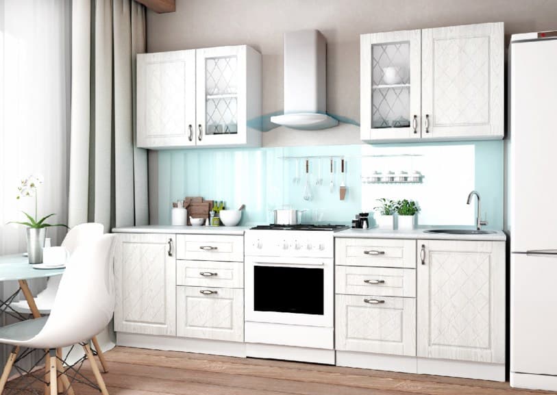Материал фасада и корпуса: ЛДСП 16 мм. Ширина кухни 260 см.