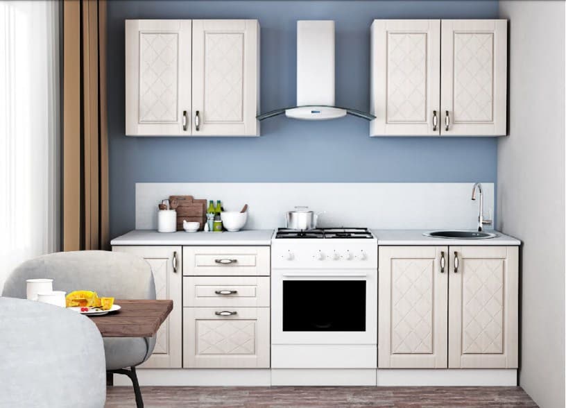 Кухня "Ромб" - это симбиоз стиля и практичности. Ее уникальные ромбовидные фасады придают кухне особую изюминку. Кухня предлагает различные модули и аксессуары, которые позволят вам организовать пространство так, как вам нравится, и создать идеальную кухню вашей мечты. Эта стандартная классическая кухня идеально впишется в любой интерьер.