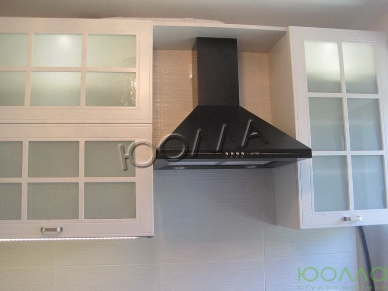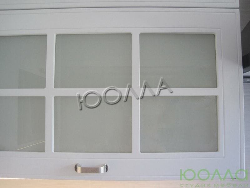 код 89673Фрезеровка придала кухне легкость и нежность, а верхние фасады со стеклом - гармоничность и завершенность.