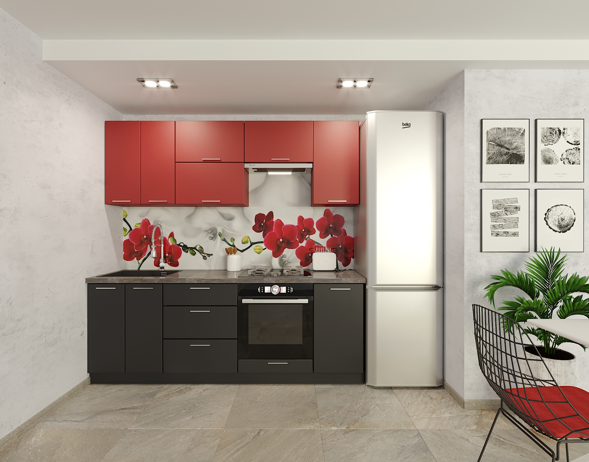 Материал корпуса и фасадов – ЛДСП. Ширина кухни 230 см.