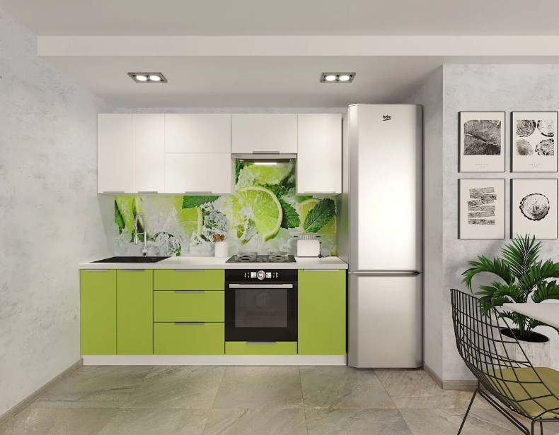 Вы можете включить в проект дополнительные опции: подсветка, мойка, смеситель, скинали, кухонную технику.