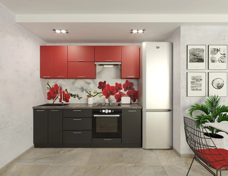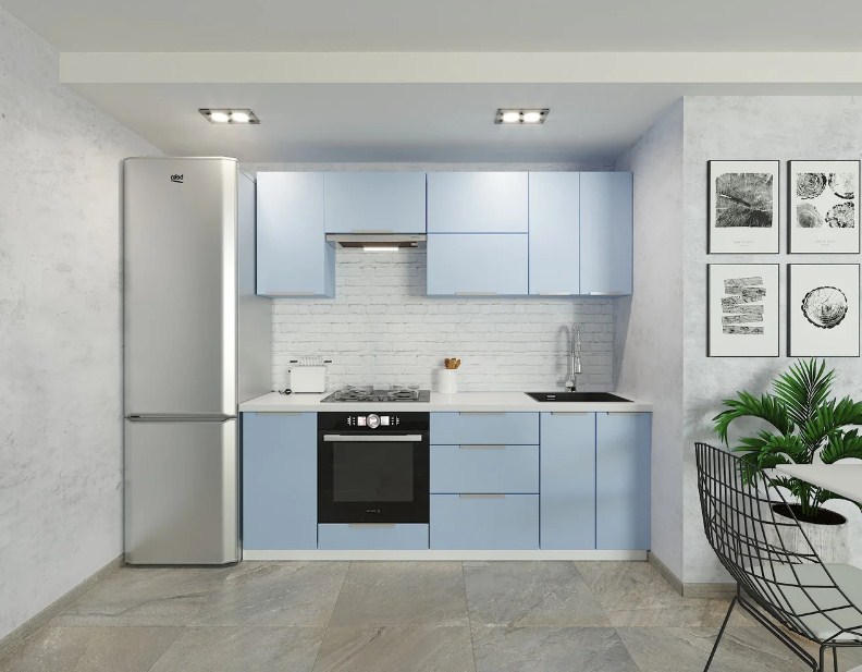 Размеры и конфигурация кухни могут быть любые: линейная, угловая, 2-х или 3-х ярусная, с применением Gola-профиля, с пеналами и т.п.