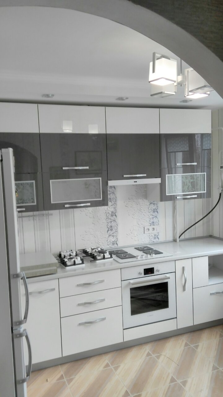 Стильная кухня, без ручек , в модных трендовых цветовых гаммах.