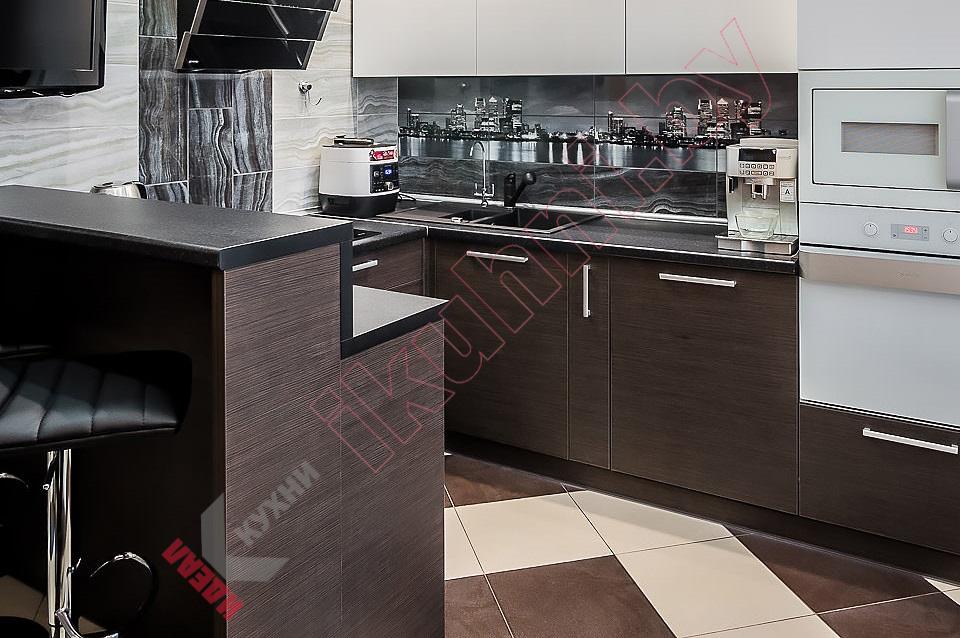 Комбинированные фасады из МДФ. Ширина кухни 180 см.