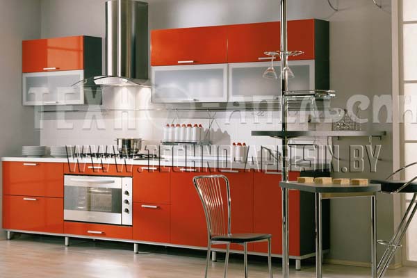 Кухня укомплектована барной стойкой (столешницей), труба-основание стойки изготовлена вместе с подставкой для бокалов и металлической полочкой.