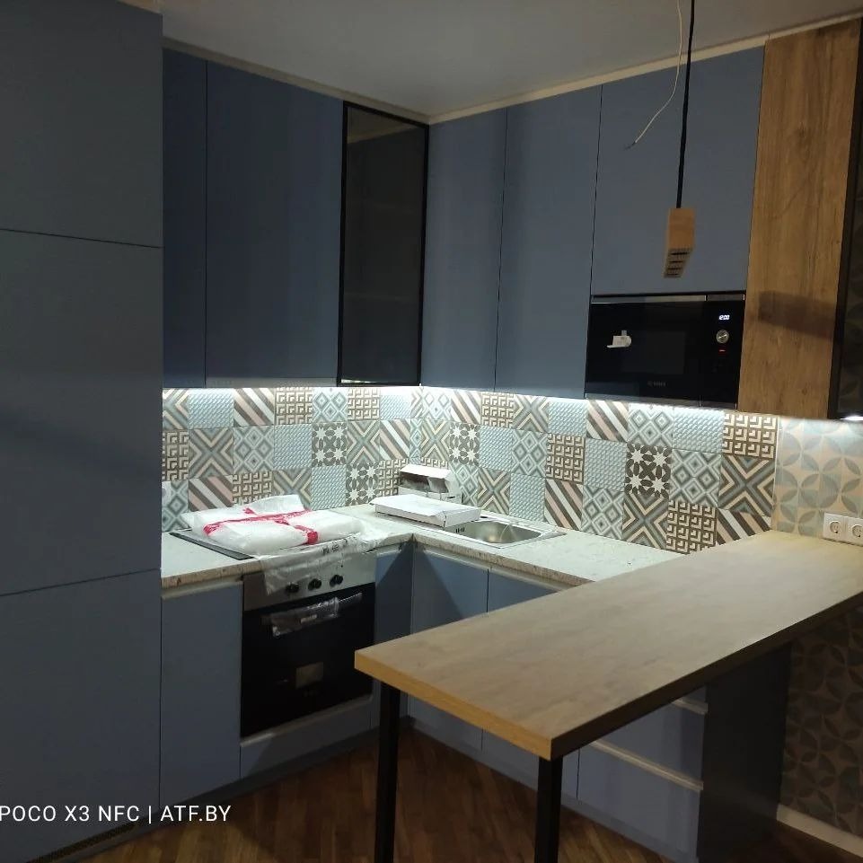 Кухня с барной стойкой и невероятным сочетанием цветов