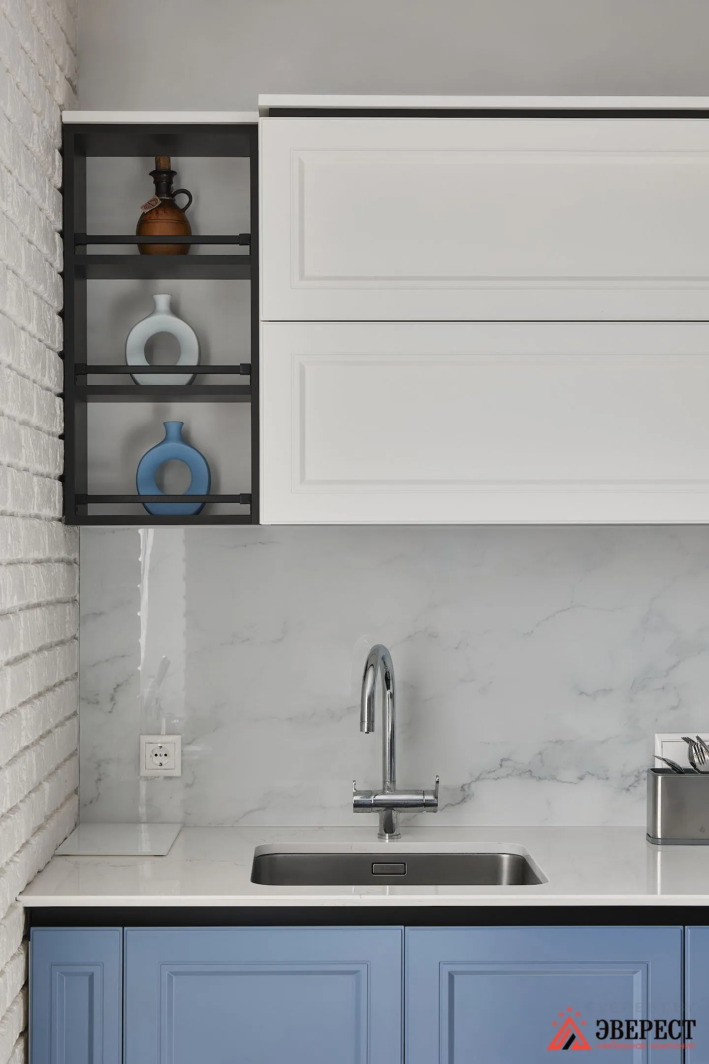 ▪️ Верх кухни получился немного разгруженным из-за вытяжки, тут всего 2 шкафа. Но мы это с лихвой компенсировали в других зонах!