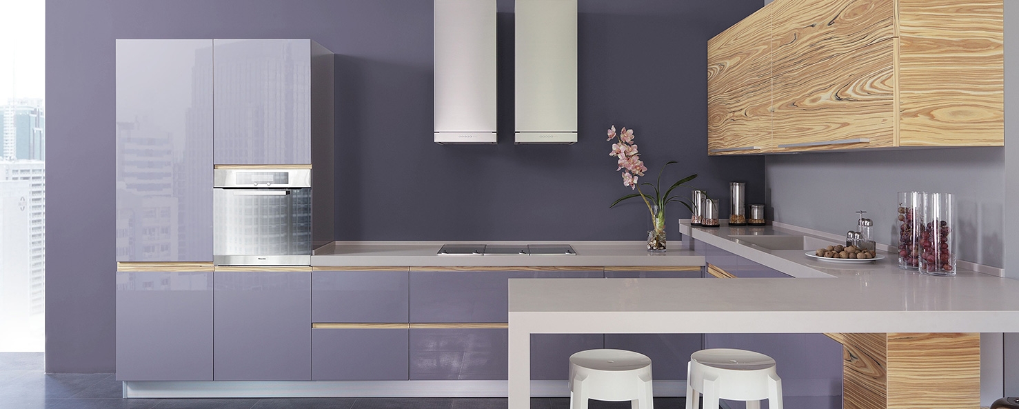 Кухня с барной стойкой Серый глянец - Светлое дерево