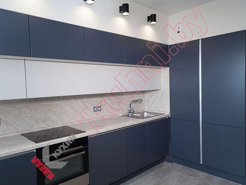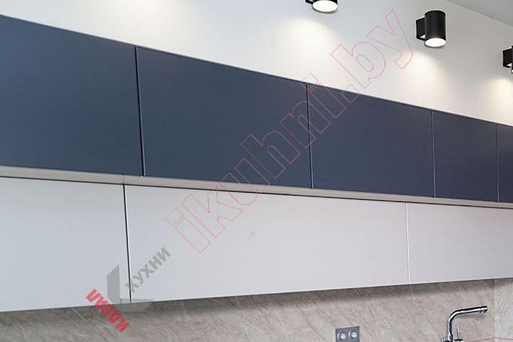 Готовый гарнитур с комбинированными фасадами из ЛДСП. Ширина кухни 240 см.