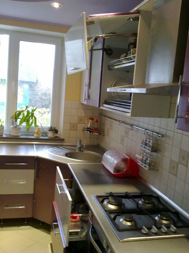Верхние фасады со стеклом. Ширина кухни 190 см.