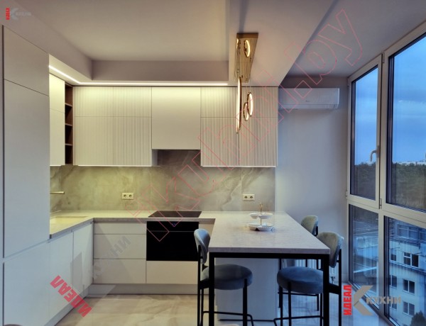 Кухня с фасадами Крашеный МДФ 3-D волна №15